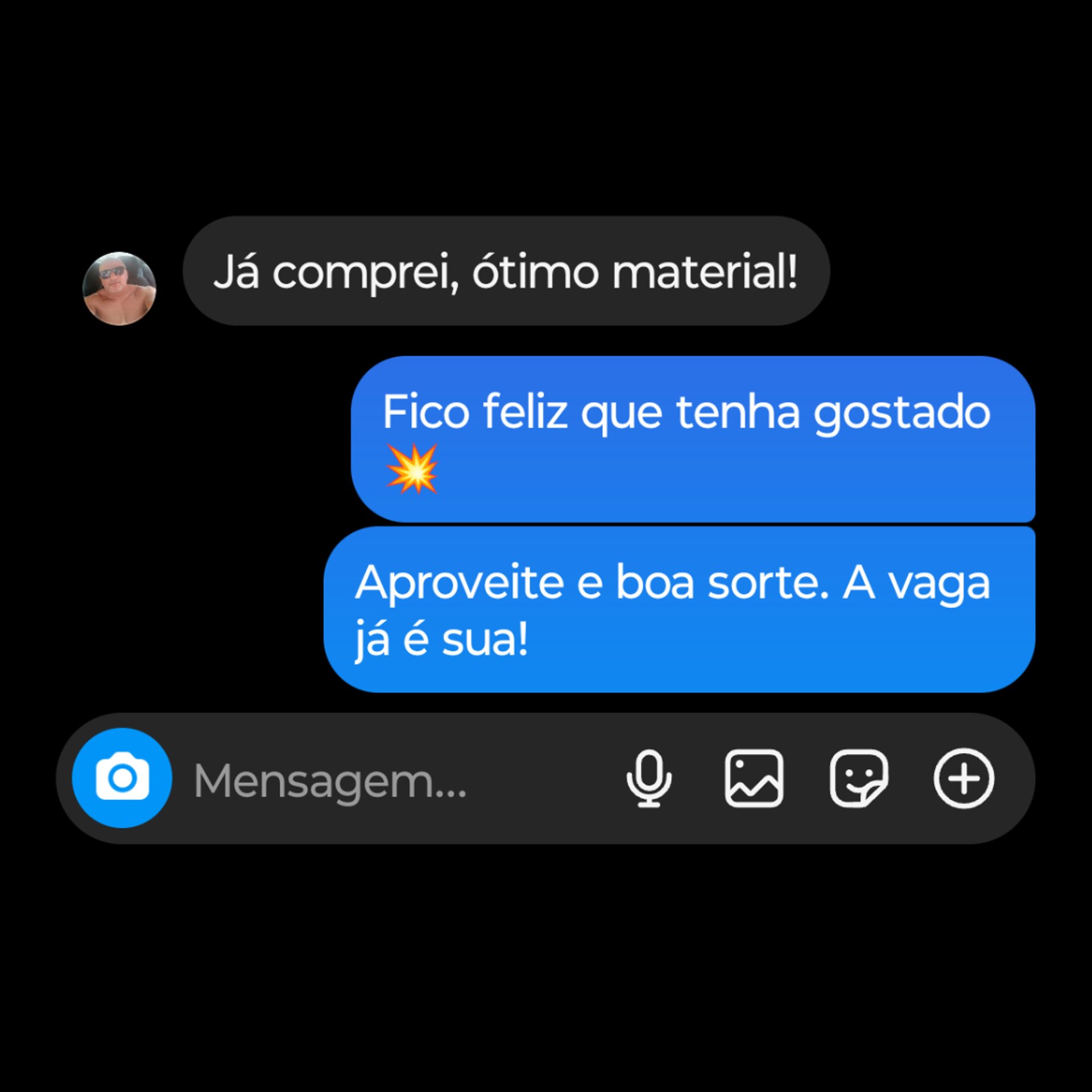 O material é entregue digitalmente (PDF), de forma instantânea após a confirmação do pagamento. Você receberá o link para download no seu e-mail e também poderá acessá-lo na plataforma.